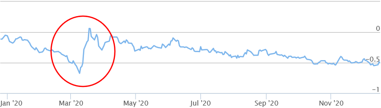 De coronacrisis zorgt voor onzekerheid op de financiële markten. Ook is de vraag naar leningen, bijvoorbeeld door overheden, fors toegenomen. Dit zorgde aanvankelijk voor snel stijgende rentes.